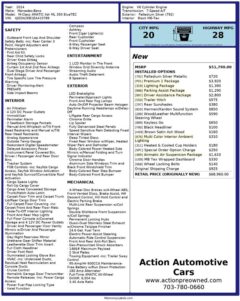 Visit us today at Action Automotive Preowned Cars and experience the comfort, efficiency, and confidence of the ML 350 BlueTEC—where Mercedes-Benz engineering truly shines. Get your next vehicle with ease! Action ships nationwide! Buy with confidence, with our ACTION JD POWER EDGE Certified Pre Owned limited Warranty! Every Action vehicle will include the ACTION JD POWER EDGE 3 months or 3,000 mile limited warranty. Extended warranty terms available thru Fidelity Warranty Services. YES We finance! Rate specials are available to well qualified buyers as well as 2nd chance our special Finance managers work in house to navigate any credit or buying situation. All vehicle prices exclude taxes, tags, fees, shipping upon request, and dealer-installed features such as LoJack or Ceramic Paint Protection. Our Dealer Processing fee is $999.00. Please see an Action dealer representative for complete details. We are available after hours via the internet, please submit a lead and we get to you right away.