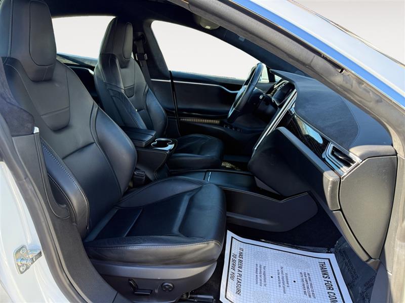 The exterior design is timeless and aerodynamic. The Pearl White Multi-Coat paint enhances the flowing body lines, flush door handles, panoramic glass roof, and distinctive Tesla silhouette. This is a sedan that looks modern from every angle and continues to stand out years after its debut.