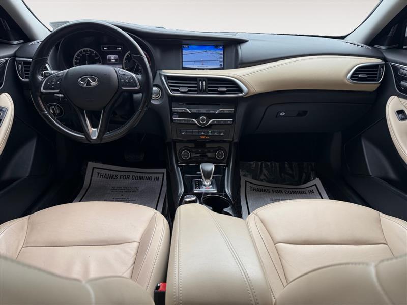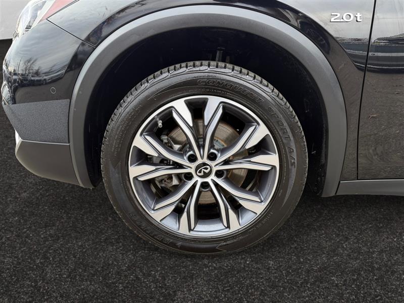 Under the hood, the 2.0L I-4 DOHC Turbocharged engine delivers 208 horsepower paired to a 7-speed dual-clutch automatic transmission for seamless shifts and exhilarating response. The Idle Stop/Start system enhances fuel efficiency without compromising power, while the Intelligent All-Wheel Drive system ensures confident traction and control in all conditions. This QX30 balances efficiency, precision, and excitement in one dynamic package.