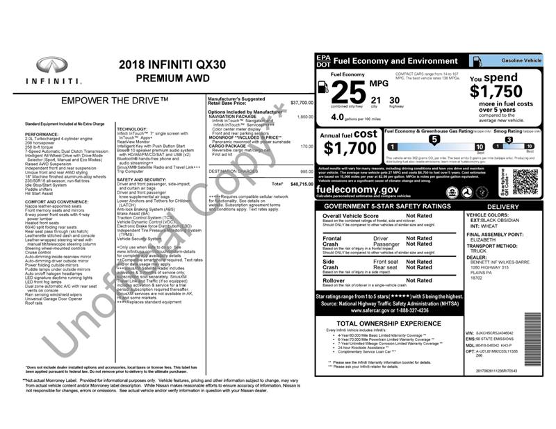 2018 INFINITI® QX30 Premium – Black Obsidian – 2.0L I-4 DOHC Turbo with Idle Stop/Start – All-Wheel Drive – 70,414 Miles