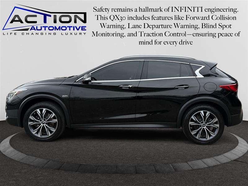 Safety remains a hallmark of INFINITI engineering. This QX30 includes features like Forward Collision Warning, Lane Departure Warning, Blind Spot Monitoring, and Traction Control—ensuring peace of mind for every drive.