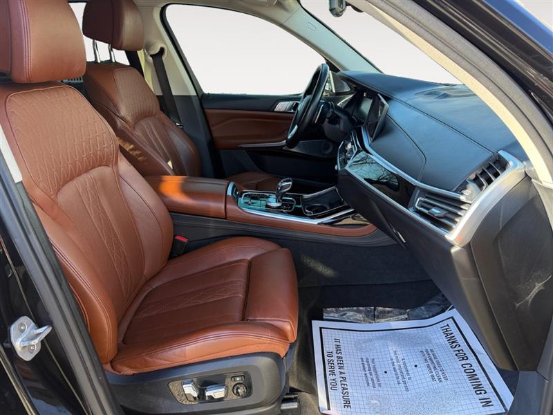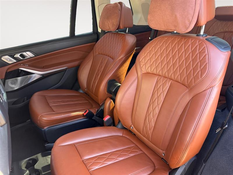 Step inside and experience a cabin crafted to rival luxury sedans. The interior features premium leather seating, power-adjustable and heated front seats, refined wood and aluminum trim, and a panoramic glass roof that fills the cabin with natural light. With three rows of seating and generous legroom throughout, the X7 offers first-class comfort for every passenger.
