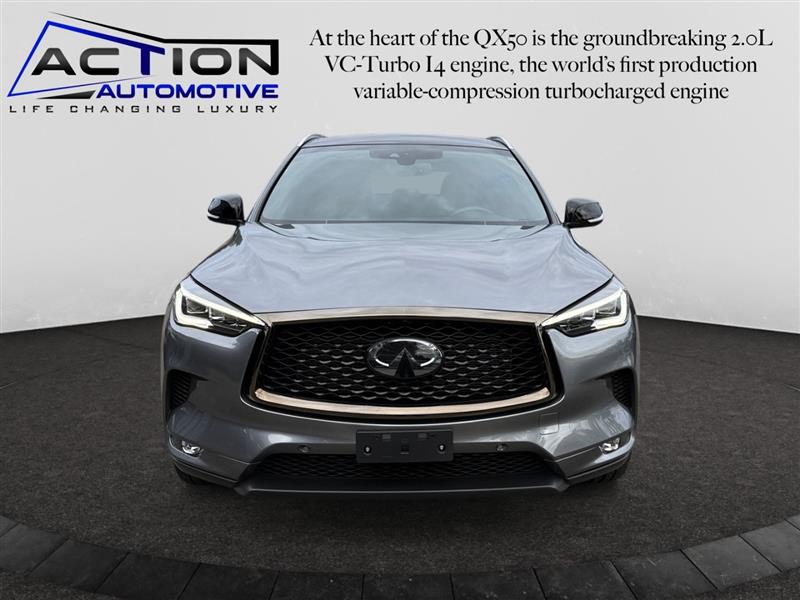 At the heart of the QX50 is the groundbreaking 2.0L VC-Turbo I4 engine, the world’s first production variable-compression turbocharged engine. This innovative powerplant automatically adjusts to optimize power and efficiency, delivering smooth acceleration while keeping fuel economy in check. Paired with All-Wheel Drive, the QX50 ensures secure handling and stability in all driving conditions—whether it’s city commutes, highway cruises, or weekend getaways.