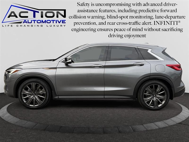 Safety is uncompromising with advanced driver-assistance features, including predictive forward collision warning, blind-spot monitoring, lane-departure prevention, and rear cross-traffic alert. INFINITI® engineering ensures peace of mind without sacrificing driving enjoyment.