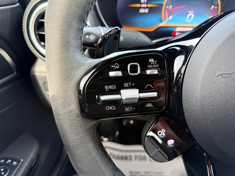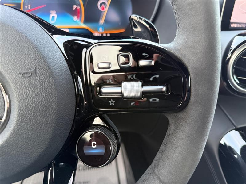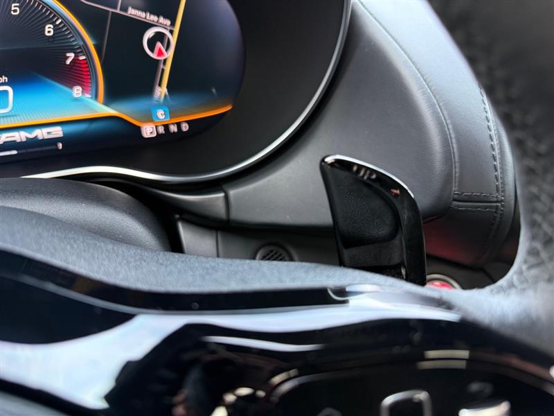 Inside, the cockpit wraps around the driver with race-inspired precision and luxury craftsmanship. Performance sport seats trimmed in premium Nappa leather provide exceptional support, while carbon fiber and aluminum accents reinforce the vehicle’s track DNA. The AMG® Performance steering wheel, configurable digital display, and aviation-style center console controls place performance command at your fingertips.