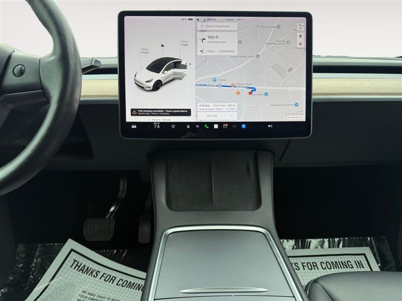 Inside, the cabin delivers the upscale, minimalist luxury Tesla is known for. The expansive 15-inch touchscreen serves as the command center for climate, entertainment, navigation, and vehicle settings. A panoramic all-glass roof floods the interior with natural light, opening up the cabin and enhancing both comfort and visibility. Premium seating, heated seats, and high-grade materials create a relaxing and modern atmosphere.