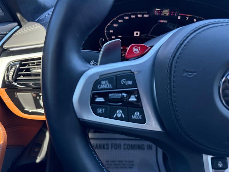 Inside, the M5 delivers a cockpit built for both performance and comfort. Merino leather upholstery, M multifunction seats with heating and ventilation, and carbon fiber interior trim set the tone for refinement and precision. Ambient lighting, a panoramic moonroof, and a heated steering wheel complete the luxurious environment.