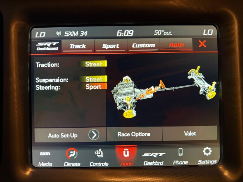 Technology is as modern as the power beneath the hood. The Uconnect® 4C system with an 8.4-inch touchscreen includes Apple CarPlay™, Android Auto™, and customizable SRT® Performance Pages that display real-time data on horsepower, torque, and G-forces.