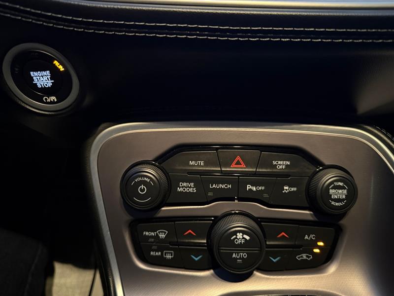 Step inside and you’ll find a driver-focused cockpit that blends performance and luxury. The Nappa leather and Alcantara® performance seats feature Scat Pack logos and contrast stitching, designed to hold you firmly in place during spirited drives. A flat-bottom SRT® steering wheel, red push-start button, and performance shift indicator amplify the thrill of every mile.