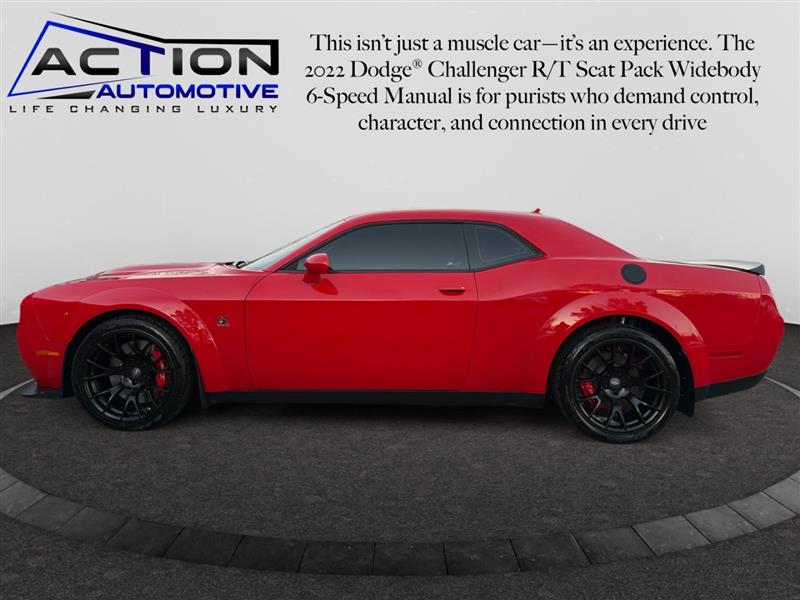 Visit us today at Action Automotive Preowned Cars and experience the raw, unfiltered excitement of this 2022 Dodge® Challenger R/T Scat Pack Widebody Manual—a true driver’s car that defines American power. Get your next vehicle with ease! Action ships nationwide! Buy with confidence, with our ACTION JD POWER EDGE Certified Pre Owned limited Warranty! Every Action vehicle will include the ACTION JD POWER EDGE 3 months or 3,000 mile limited warranty. Extended warranty terms available thru Fidelity Warranty Services. YES We finance! Rate specials are available to well qualified buyers as well as 2nd chance our special Finance managers work in house to navigate any credit or buying situation. All vehicle prices exclude taxes, tags, fees, shipping upon request, and dealer-installed features such as LoJack or Ceramic Paint Protection. Our Dealer Processing fee is $999.00. Please see an Action dealer representative for complete details. We are available after hours via the internet, please submit a lead and we get to you right away.