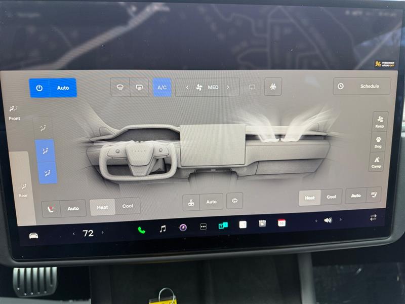At the center of the cockpit sits Tesla’s stunning touchscreen command center, controlling navigation, climate, media, and vehicle settings with intuitive precision. Real-time navigation, Bluetooth®, Wi-Fi connectivity, voice commands, and over-the-air software updates ensure the vehicle continually evolves with new enhancements and features.
