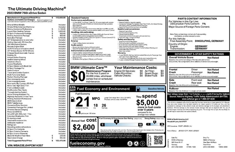 Visit Action Automotive Preowned Cars today and experience the presence, performance, and innovation of the 2023 BMW® 7 Series 760i xDrive—where flagship luxury meets modern engineering excellence. Get your next vehicle with ease! Action ships nationwide! Buy with confidence, with our ACTION JD POWER EDGE Certified Pre Owned limited Warranty! Every Action vehicle will include the ACTION JD POWER EDGE 3 months or 3,000 mile limited warranty. Extended warranty terms available thru Fidelity Warranty Services. YES We finance! Rate specials are available to well qualified buyers as well as 2nd chance our special Finance managers work in house to navigate any credit or buying situation. All vehicle prices exclude taxes, tags, fees, shipping upon request, and dealer-installed features such as LoJack or Ceramic Paint Protection. Our Dealer Processing fee is $999.00. Please see an Action dealer representative for complete details. We are available after hours via the internet, please submit a lead and we get to you right away.