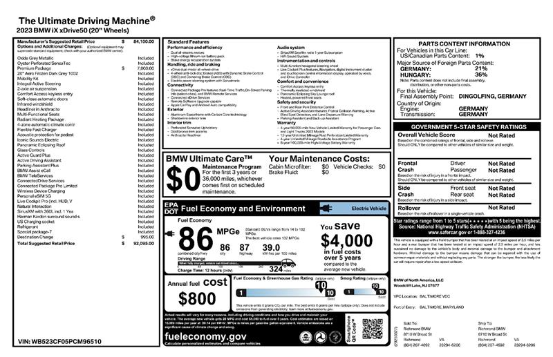 Visit Action Automotive Preowned Cars today and experience the future-forward luxury, electrifying performance, and advanced technology of this exceptional 2023 BMW iX xDrive50. Get your next vehicle with ease! Action ships nationwide! Buy with confidence, with our ACTION JD POWER EDGE Certified Pre Owned limited Warranty! Every Action vehicle will include the ACTION JD POWER EDGE 3 months or 3,000 mile limited warranty. Extended warranty terms available thru Fidelity Warranty Services. YES We finance! Rate specials are available to well qualified buyers as well as 2nd chance our special Finance managers work in house to navigate any credit or buying situation. All vehicle prices exclude taxes, tags, fees, shipping upon request, and dealer-installed features such as LoJack or Ceramic Paint Protection. Our Dealer Processing fee is $999.00. Please see an Action dealer representative for complete details. We are available after hours via the internet, please submit a lead and we get to you right away.