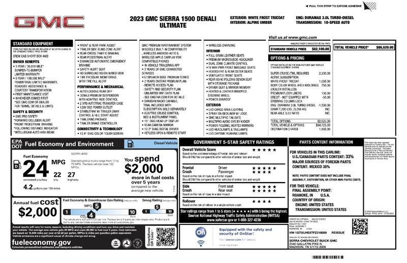Visit us today at Action Automotive Preowned Cars and experience the ultimate blend of diesel efficiency, luxury craftsmanship, and professional-grade capability with the 2023 GMC® Sierra 1500 Denali Ultimate—where power meets prestige. Get your next vehicle with ease! Action ships nationwide! Buy with confidence, with our ACTION JD POWER EDGE Certified Pre Owned limited Warranty! Every Action vehicle will include the ACTION JD POWER EDGE 3 months or 3,000 mile limited warranty. Extended warranty terms available thru Fidelity Warranty Services. YES We finance! Rate specials are available to well qualified buyers as well as 2nd chance our special Finance managers work in house to navigate any credit or buying situation. All vehicle prices exclude taxes, tags, fees, shipping upon request, and dealer-installed features such as LoJack or Ceramic Paint Protection. Our Dealer Processing fee is $999.00. Please see an Action dealer representative for complete details. We are available after hours via the internet, please submit a lead and we get to you right away.