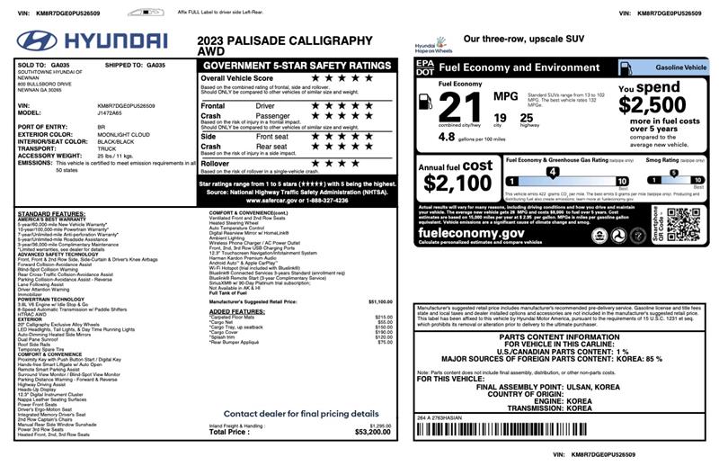 Come visit us today at Action Automotive Preowned Cars and experience this 2023 Hyundai® Palisade Calligraphy for yourself. Once you’re behind the wheel, you’ll understand why it sets the benchmark for three-row luxury SUVs. Get your next vehicle with ease! Action ships nationwide! Buy with confidence, with our ACTION JD POWER EDGE Certified Pre Owned limited Warranty! Every Action vehicle will include the ACTION JD POWER EDGE 3 months or 3,000 mile limited warranty. Extended warranty terms available thru Fidelity Warranty Services. YES We finance! Rate specials are available to well qualified buyers as well as 2nd chance our special Finance managers work in house to navigate any credit or buying situation. All vehicle prices exclude taxes, tags, fees, shipping upon request, and dealer-installed features such as LoJack or Ceramic Paint Protection. Our Dealer Processing fee is $999.00. Please see an Action dealer representative for complete details. We are available after hours via the internet, please submit a lead and we get to you right away.