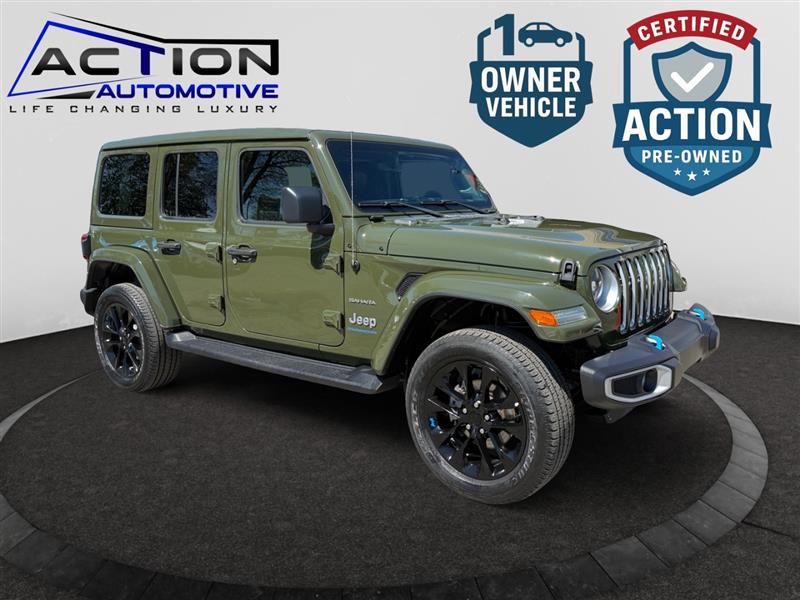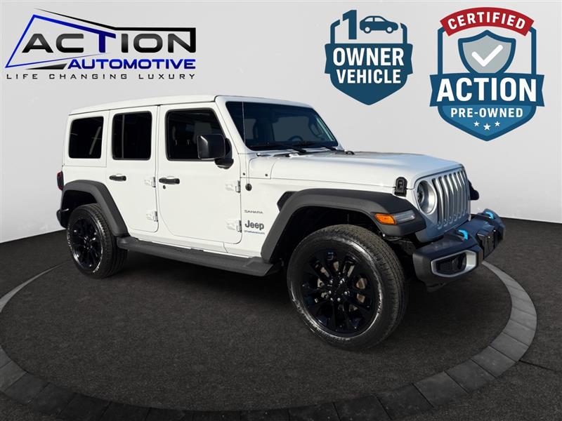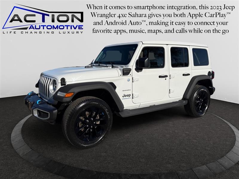 Visit Action Automotive Preowned Cars today and experience the capability, technology, and electrified excitement of this incredible 2023 Jeep Wrangler 4xe Sahara. 🚗 Get your next vehicle with ease! Action ships nationwide! Buy with confidence, with our ACTION JD POWER EDGE Certified Pre Owned limited Warranty! Every Action vehicle will include the ACTION JD POWER EDGE 3 months or 3,000 mile limited warranty. Extended warranty terms available thru Fidelity Warranty Services. YES We finance! Rate specials are available to well qualified buyers as well as 2nd chance our special Finance managers work in house to navigate any credit or buying situation. All vehicle prices exclude taxes, tags, fees, shipping upon request, and dealer-installed features such as LoJack or Ceramic Paint Protection. Our Dealer Processing fee is $999.00. Please see an Action dealer representative for complete details. We are available after hours via the internet, please submit a lead and we get to you right away.