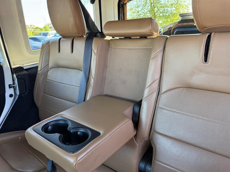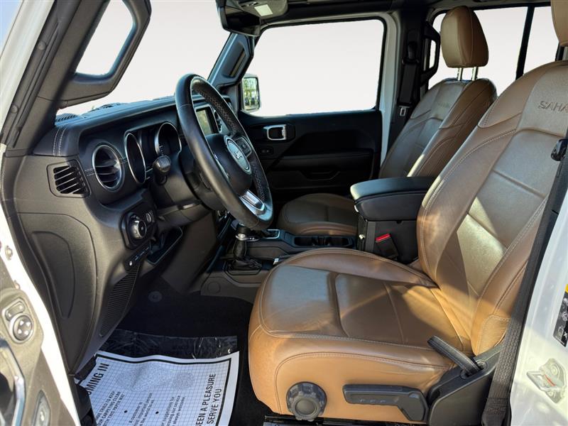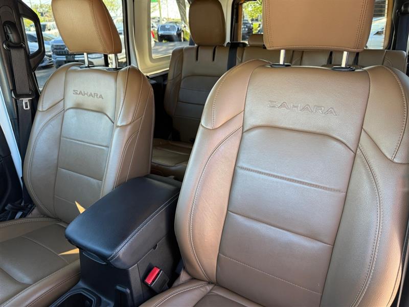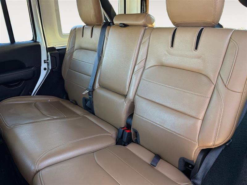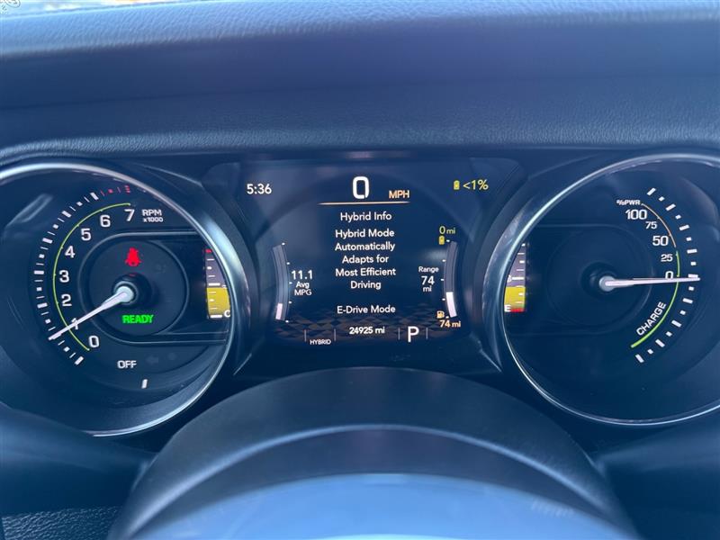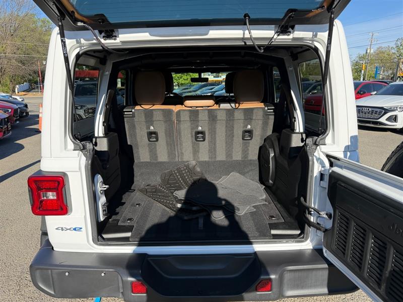 Safety is another major part of the package. Standard features include a rear backup camera with dynamic gridlines, advanced multistage front airbags, supplemental front seat side airbags, electronic stability control, traction control, antilock brakes, tire-pressure monitoring, and theft-deterrent systems. Available safety groups on the Sahara 4xe also offered blind-spot monitoring, rear park assist, adaptive cruise control, and forward collision warning, adding even more confidence to an already capable SUV.