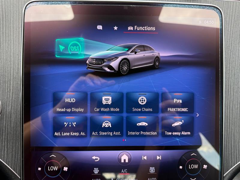 Inside the cabin, the AMG® EQE blends modern technology with luxurious craftsmanship. Premium performance seating, heated front seats, and ambient interior lighting create an inviting and sophisticated atmosphere. The spacious interior provides exceptional comfort for both driver and passengers, while AMG® performance design elements remind you that this is no ordinary electric vehicle.