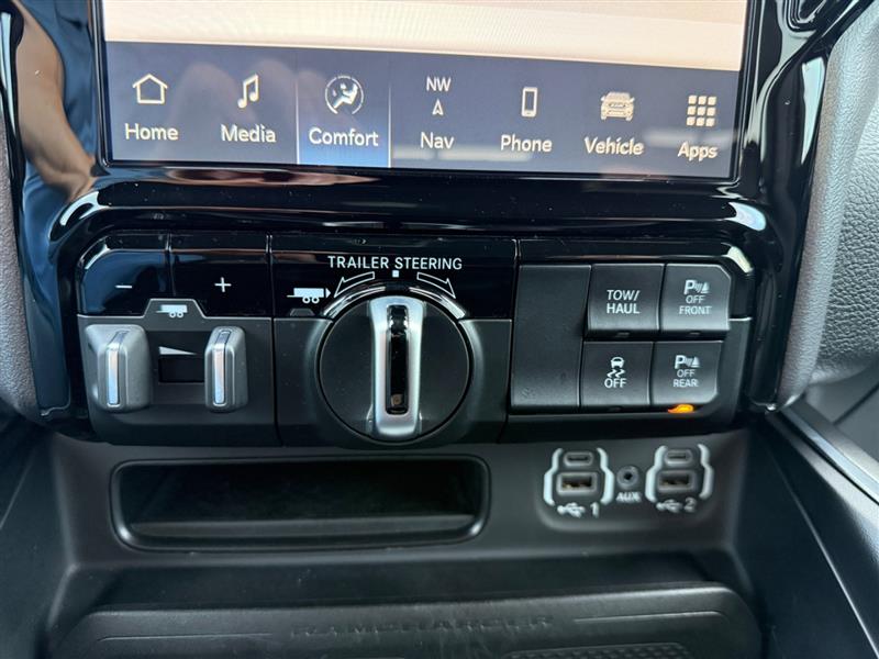 Technology is where the RAM 1500 Laramie truly shines. The large Uconnect® touchscreen infotainment system provides intuitive access to navigation, media, and vehicle settings. Seamless smartphone integration through Apple CarPlay™ and Android Auto™ keeps you connected to your apps, music, and navigation. A premium Harman Kardon® sound system delivers powerful, high-quality audio throughout the cabin.