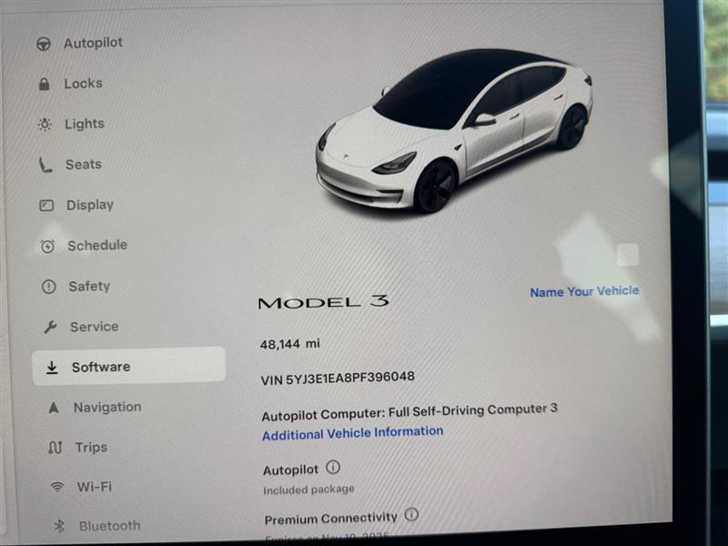 2023 Tesla® Model 3 – Pearl White Multi-Coat – AC Permanent Magnet Motor – Rear-Wheel Drive – One Owner – 48,128 Miles – 272-Mile Estimated Range