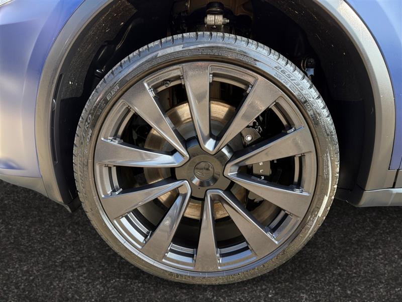 The exterior design is both futuristic and commanding. The Deep Blue Metallic finish highlights its aerodynamic shape, while the signature Falcon Wing® doors create an entrance unlike any other SUV on the road. Sleek LED lighting and bold proportions give the Model X a presence that is instantly recognizable as Tesla®.