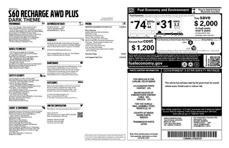 The 2023 Volvo® S60 Recharge Plug-In Hybrid Plus Dark Theme is more than a luxury sedan—it’s the perfect blend of performance, sustainability, and Scandinavian craftsmanship.