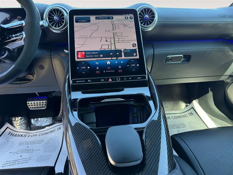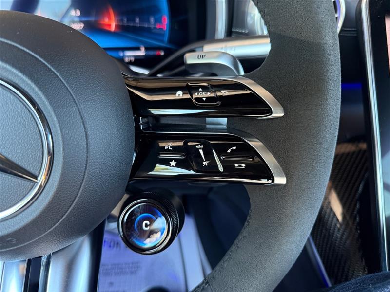 Inside, the cabin wraps you in handcrafted luxury and race-inspired design. Enjoy Nappa leather AMG Performance seats, carbon fiber trim, and the latest MBUX infotainment system with a widescreen digital cockpit. Stay seamlessly connected with Apple CarPlay™ and Android Auto™, while the Burmester® 3D High-End Surround Sound System immerses you in crystal-clear audio.