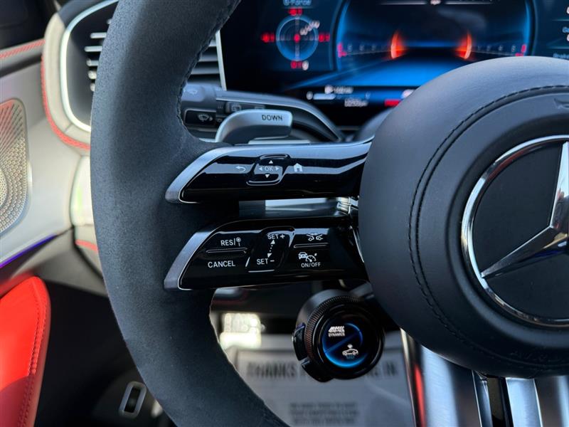 Step inside and experience a cabin that blends performance-focused design with premium craftsmanship. The interior features luxurious leather seating, heated and ventilated front seats, a heated steering wheel, and ambient lighting that creates a sophisticated atmosphere. AMG® performance seats and a flat-bottom AMG® steering wheel place the driver firmly in command while maintaining exceptional comfort for long journeys.