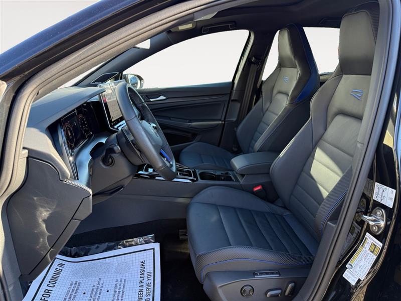 The Black Edition styling package elevates the Golf R’s already aggressive appearance. The Mythos Black Metallic finish is complemented by blacked-out trim, performance wheels, signature R badging, LED lighting, and an athletic stance that communicates pure performance from every angle. This is a hatchback that looks as fast as it drives.