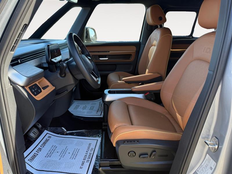 Inside, the cabin is a masterpiece of space, flexibility, and forward-thinking design. Premium seating surfaces, heated front seats, ambient interior lighting, and sustainable materials create a welcoming, lounge-like environment. The flat floor architecture opens up exceptional passenger space, while configurable seating and generous cargo capacity make this EV as practical as it is stylish.